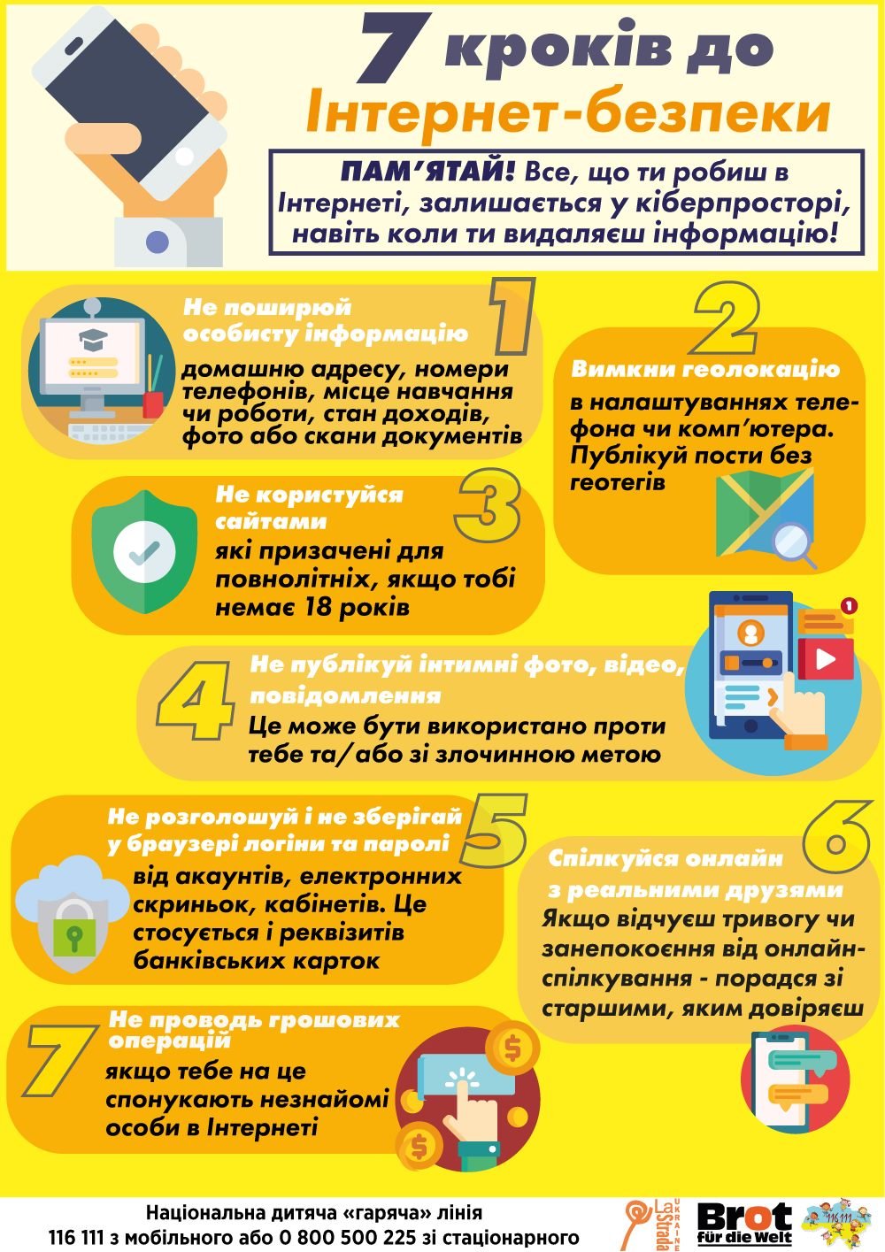 На сайті Міністерства освіти і науки можна знайти розділ «БЕЗПЕКА ДІТЕЙ В ІНТЕРНЕТІ» для підвищення рівня обізнаності батьків і вчителів. Зокрема, розміщені поради для батьків щодо організації взаємодії «дитина-інтернет-мобільний зв’язок» від Національної експертної комісії України з питань захисту суспільної моралі.